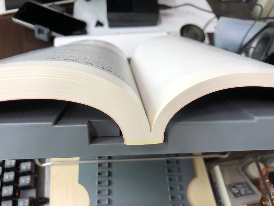 단점은 책을 고정할 수 있는 핀이 없어서 페이지가 막 요동칠 때는 스트레스를 받게 한다. 가끔 고무줄 같은 것으로 고정을 하며 책을 보곤 했는데 이 부분만 해결된다면 이것이야 말로 휴대용으로 가장 최고의 독서대가 아닐까 싶다.