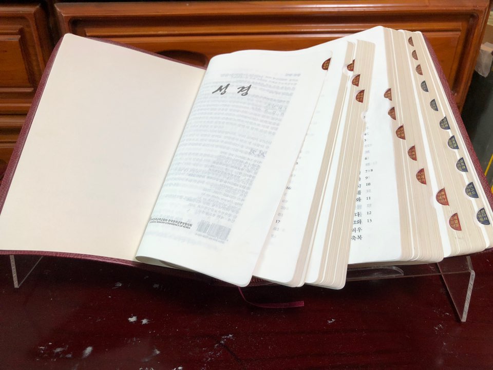 아크릴 독서대는 처음 보자마자 경이로운 디자인에 몹시 끌려 바로 주문했는데, 생각보다 무거운 책을 놓으면 바닥으로 꺼질 것 같은 내구성을 보여주어 어머니 성경책 읽으실 때 쓰시라고 드렸다.