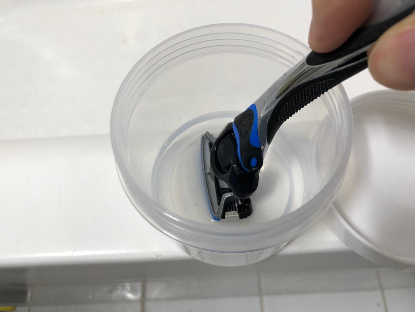 - 세척통에 살균제를 면도날이 담길 정도로 담아 주세요.